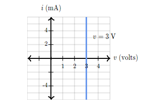 理想的恒定电压源具有固定的输出电压,与连接到其端子的元件所吸取的电流无关,如下所示的电流与电压图表: