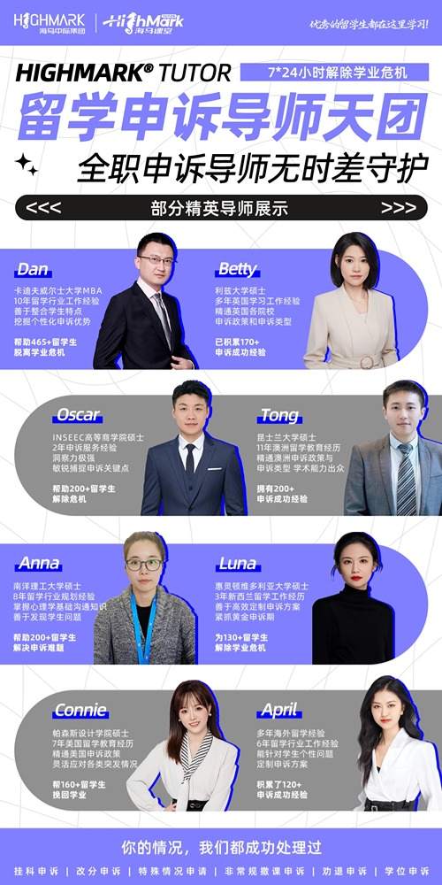 如果考试周没有准备好想要申请ec,海马课堂有着丰富的申诉经验。各种类型的考试申诉类型我们都处理过。申诉老师响应及时又高效,24 小时随时为学生排忧解难。留学生自行 DIY 申请确实存在风险,相比之下,求助海马课堂更有保障。最后提醒留学生及时EC申请可以免除处罚哦~