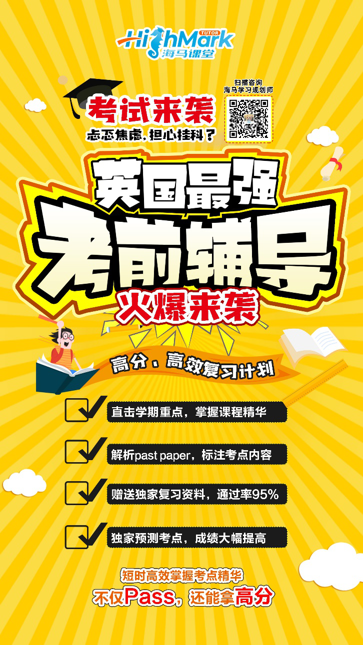 海马课堂,针对课程内容的重点、难点进行整体梳理和详细的讲解,Past Paper习题讲解和考点预测,传授应试技巧,总结规律,短时高效帮助同学顺利通过考试,取得好成绩!