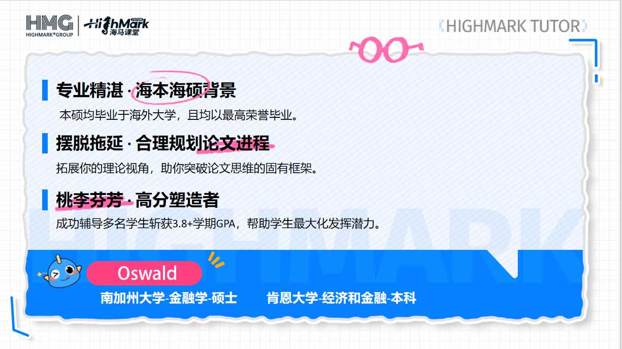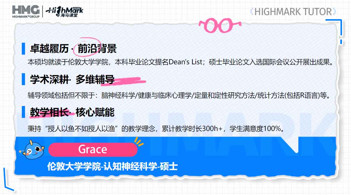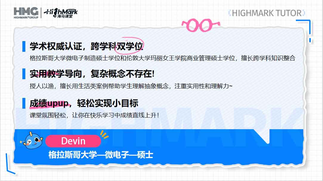 海马课堂始终坚持严选导师,确保每位导师不仅具备一流的学术背景,更拥有切实可行的教学方法。无论你处在哪个学科领域,都能在这里找到合适的导师,助你打破学习瓶颈、稳步提升成绩。现在就咨询海马课堂,让学习之路更加高效、顺利!